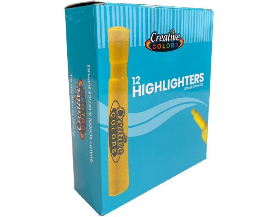 Creative Colors Bulk Yellow Highlighters – Slanted Chisel Tip – Case Pack 144
