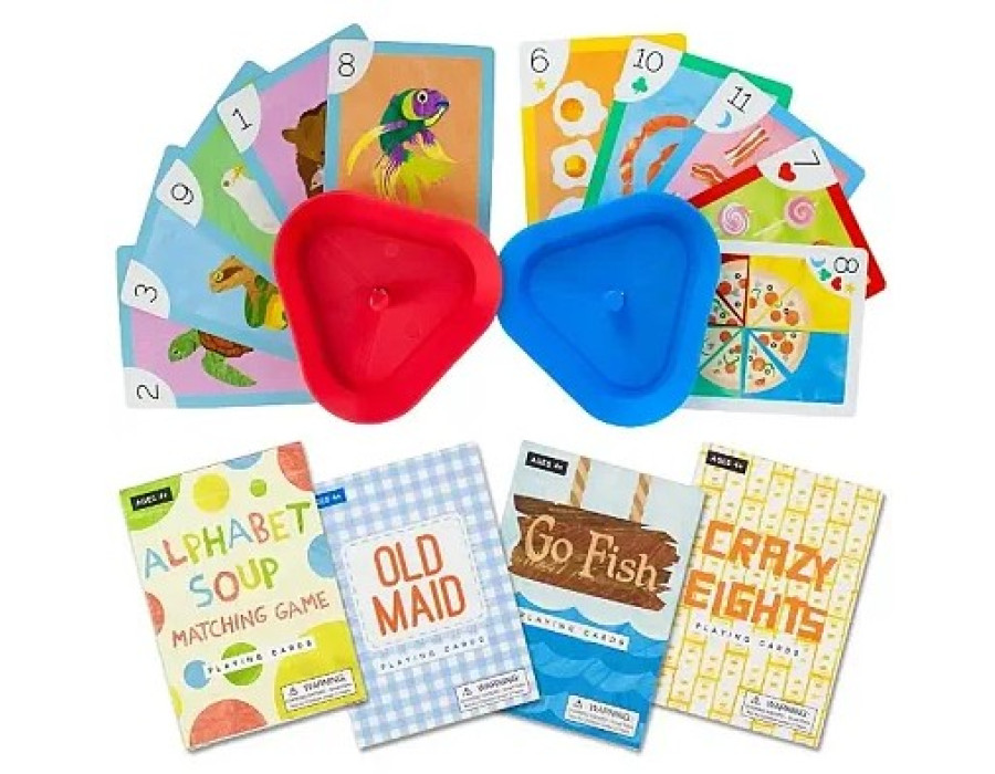 Tags: children’s card games, 4 pack card games, Old Maid, Go Fish, Crazy Eights, Alphabet Soup game, educational card games, family game night, kids learning toys, durable card games for kids