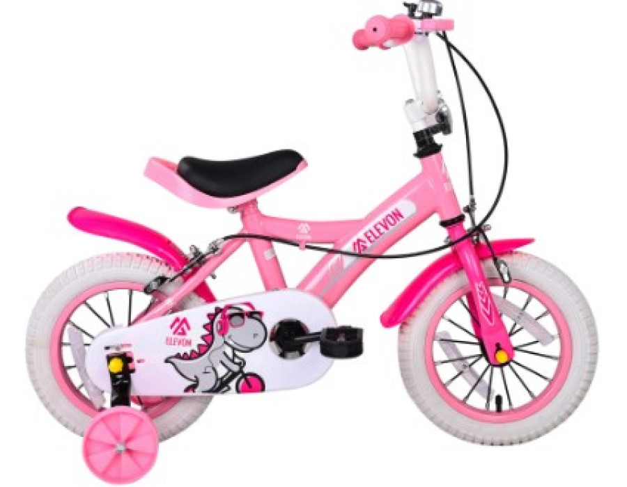 Tags: Elevon, kids bike, 14", dinosaur bike, training wheels, pink bike, beginner bicycle, ages 3+, outdoor toy
