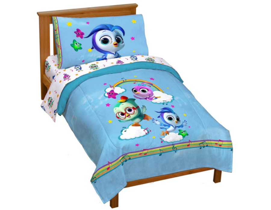 Make bedtime magical with the Amazon Studio Do, Re & Mi 4‑Piece Toddler Size Bed Set. Inspired by the joyful musical series, this bedding set brings your child’s favorite singing birds to life with vibrant colors and soft, cozy fabrics. Crafted from 100% brushed microfiber polyester, it’s designed for comfort, durability, and easy care.