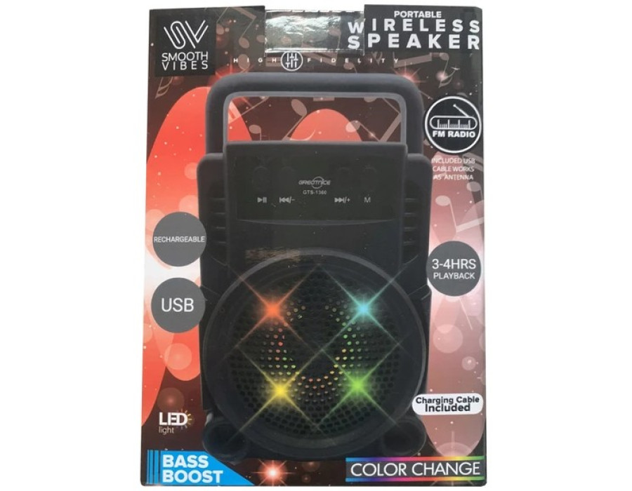 Tags: portable speaker, bluetooth, FM radio, rechargeable, USB compatible, travel audio, outdoor tech, giftable electronics, compact speaker, audio gear