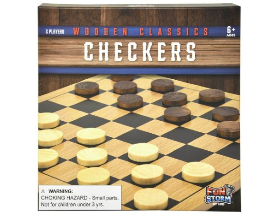 Tags: checkers, wood board game, family game, travel game, educational toy, ages 6+, strategy game