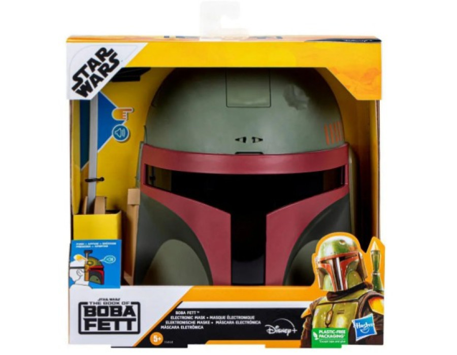 Tags: Star Wars, Boba Fett, electronic mask, sound effects, role play, Book of Boba Fett, cosplay, helmet, Hasbro, kids costume, adjustable strap, rangefinder, collectible