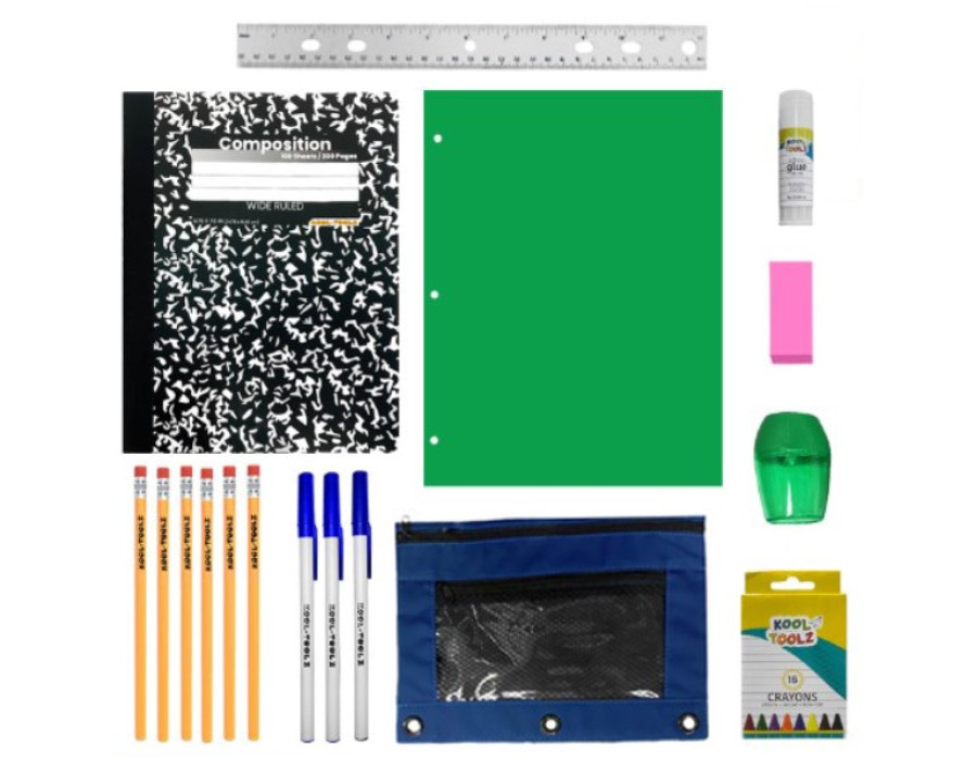 33 Piece universal school supply kit for any grade student. Help those in need with basic writing tools needed to start the school year.