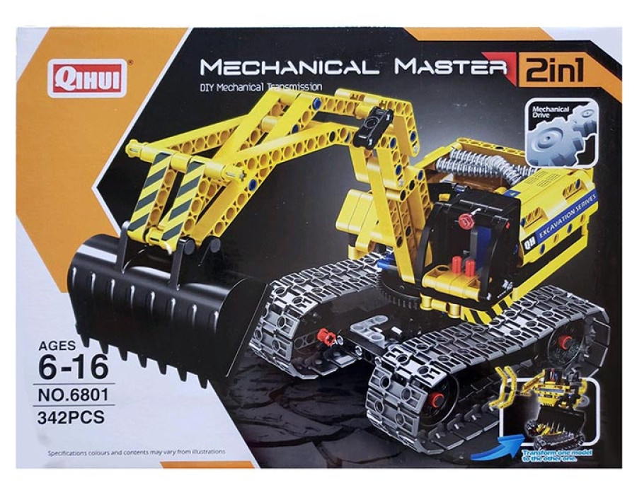Build your own 2‑in‑1 transformable Excavator-to-Robot tracked construction toy with this Technic‑compatible set from Qihui Toys. The Mechanical Master 6801 set includes 342 high‑quality ABS bricks, wheeled tracks, and a working scoop. Kids can assemble either a rugged construction‑site excavator or a poseable robot using the included step‑by‑step picture instructions.