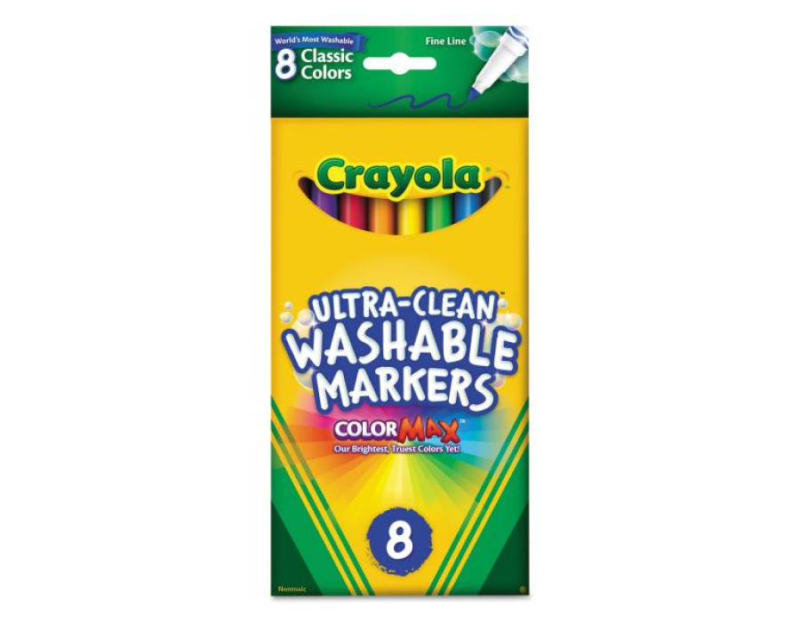 Tags: Crayola, washable markers, fine line markers, 8 count markers, kids markers, school supplies, art supplies, classroom supplies, classic colors, washable fine tip markers