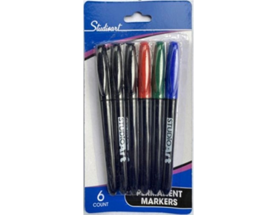 Tags: permanent markers, studioart, markers 6 pack, assorted markers, bullet tip, school supplies, office supplies, donation supplies